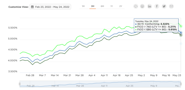 Notice the borrowers with 740+ FICO scores have average rates of 5.211%, while the sub-680 borrowers have average rates of 5.619%.