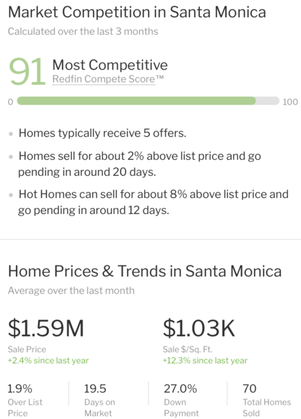 If it happens to be a Hot Home in an equally hot hood like Santa Monica, the property might go under contract in just 12 days and sell for 8% above asking.